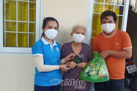 | Hội LHPN xã Tạ An Khương, huyện Đầm Dơi tặng khẩu trang cho người dân trên địa bàn xã. |