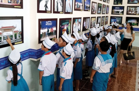 | Các em học sinh Trường Tiểu học Nguyễn Ðình Chiểu tham quan trưng bày “Nghệ thuật Ðờn ca tài tử Nam Bộ” tại Bảo tàng tỉnh Cà Mau. |