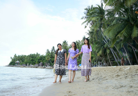 Nhóm bạn trẻ trải nghiệm du lịch Hòn Sơn (tỉnh Kiên Giang). Ảnh: Đ.K.C