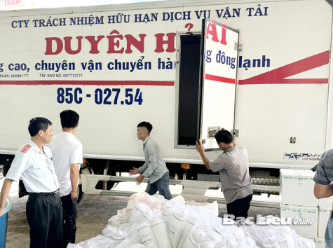 Sáng 18/4, trong lúc tuần tra, kiểm soát trên tuyến Quản Lộ - Phụng Hiệp thuộc địa bàn huyện Phước Long, Thanh tra Sở NN&PTNT đã tiến hành kiểm tra xe tải mang biển kiểm soát 85C-207.54 vận chuyển tôm giống từ tỉnh Ninh Thuận về Bạc Liêu - (ảnh).