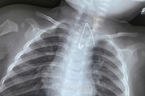 Bác sĩ Ninh Thị Ly, Trưởng phòng Công tác xã hội Bệnh viện Sản - Nhi Cà Mau cho biết: “Bé 7 tháng tuổi đã nuốt kim tây vào đường tiêu hóa. Đầu mũi kim nằm rất gần động mạch chủ nên quá trình can thiệp đòi hỏi sự cẩn trọng và khéo léo để tránh gây tổn thương nguy hiểm cho bé”.