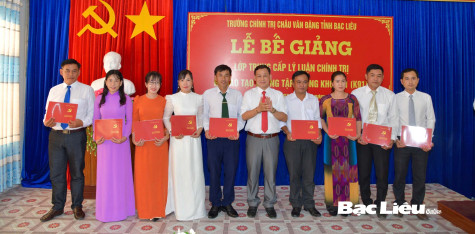 Chiều 7/4, Trường Chính trị Châu Văn Đặng tổ chức lễ bế giảng và cấp bằng tốt nghiệp cho học viên lớp Trung cấp Lý luận chính trị hệ đào tạo không tập trung khóa 91 (K91).