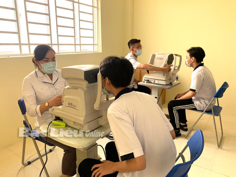 Đo mắt cho học sinh Trường THPT Chuyên Bạc Liêu.