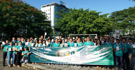 | Toàn thể cán bộ, nhân viên BIDV Cà Mau tham gia chiến dịch phủ QR thanh toán đối với khách hàng tiểu thương. |