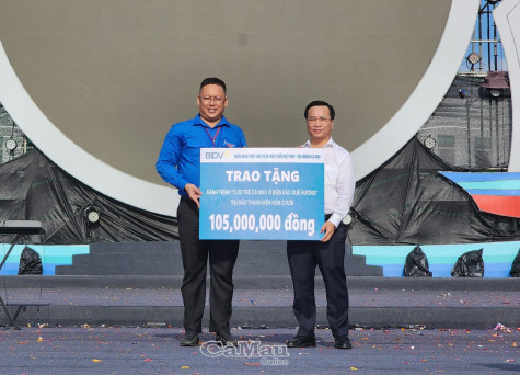 Ngày 11/12, BIDV Cà Mau tổ chức trao tặng số tiền hỗ trợ 105 triệu đồng cho Tỉnh đoàn Cà Mau thực hiện chương trình Hành trình “Tuổi trẻ Cà Mau vì biển, đảo quê hương”.
