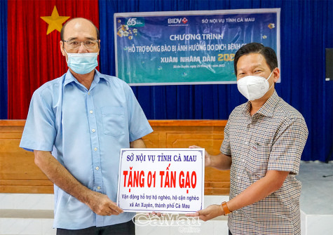(CMO) Sáng 25/1, Ngân hàng TMCP Đầu tư và Phát triển Việt Nam (BIDV) chi nhánh Cà Mau phối hợp với Sở Nội vụ trao trao quà Tết hỗ trợ người dân xã An Xuyên, TP. Cà Mau bị ảnh hưởng dịch bệnh Covid-19. 30 người dân được nhận quà, mỗi phần quà là 500.000 đồng tiền mặt.