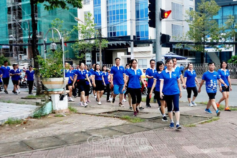| Cán bộ, nhân viên BIDV Cà Mau hưởng ứng giải thể thao “Tết ấm cho người nghèo - Vì miền Trung thân yêu” (tại Công viên Hồng Bàng, Phường 7, trước trụ sở BIDV Cà Mau). |