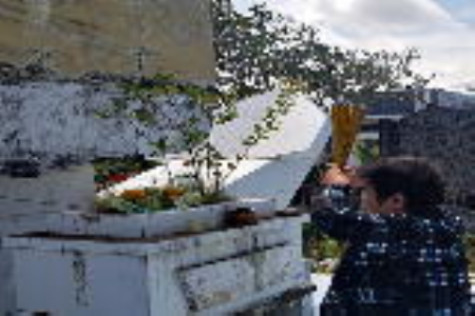 | Những lúc nhớ con, bà Lê Thị Út đến thắp nhang tại bia tưởng niệm đồng bào tử nạn trong cơn bão số 5. |