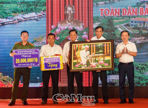 | Phó chủ tịch UBND tỉnh Cà Mau Nguyễn Minh Luân trao Bằng khen của Chủ tịch UBND tỉnh cho các tập thể, cá nhân có thành tích xuất sắc trong công tác xây dựng phong trào toàn dân bảo vệ ANTQ của xã Hồ Thị Kỷ. |