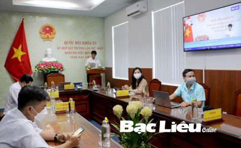 Đoàn đại biểu Quốc hội tỉnh Bạc Liêu họp trực tuyến tại kỳ họp bất thường. Ảnh: K.K