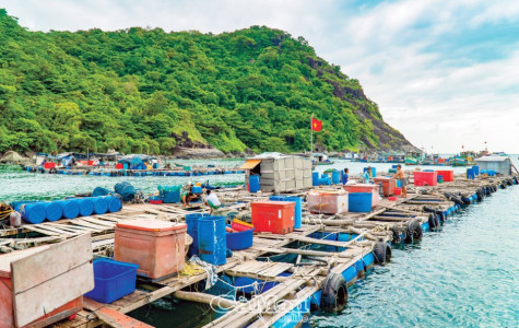 Làng nuôi cá lồng bè của ngư dân trên đảo Hòn Chuối.