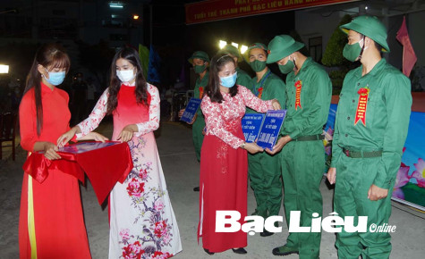 TP. Bạc Liêu tặng sổ tiết kiệm cho thanh niên lên đường nhập ngũ làm nhiệm vụ bảo vệ Tổ quốc. Ảnh: T.H