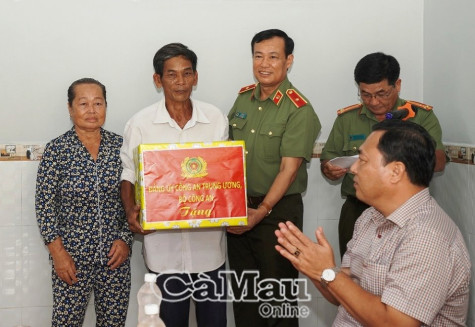 Thứ trưởng Bộ Công an Lê Tấn Tới đến thăm, tặng quà gia đình ông Nguyễn Tường Dân, phường 7, TP.Cà Mau, nguyên Trưởng phòng Cảnh sát Hình sự Công an tỉnh Minh Hải.
