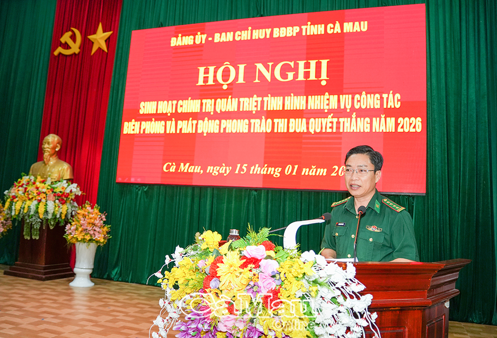 Báo Cà Mau Chiều 15/1, Đảng uỷ - Ban Chỉ huy Bộ đội Biên phòng (BĐBP) tỉnh Cà Mau tổ chức hội nghị sinh hoạt chính trị quán triệt nhiệm vụ công tác Biên phòng và phát động phong trào Thi đua Quyết thắng năm 2026.