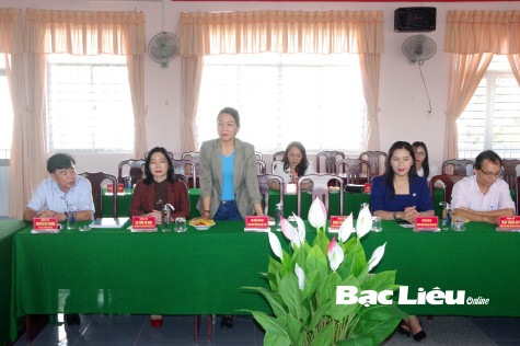 Phó Tổng Biên tập Báo Bạc Liêu - Nguyễn Thị Lâm Anh phát biểu tại buổi họp mặt.