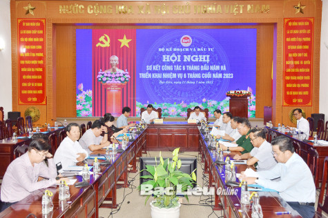 (BL-CL) Chiều 21/7, Bộ Kế hoạch và Đầu tư (KH-ĐT) tổ chức Hội nghị trực tuyến sơ kết công tác 6 tháng đầu năm và triển khai nhiệm vụ trọng tâm 6 tháng cuối năm 2023. Đồng chí Nguyễn Chí Dũng - Bộ trưởng Bộ KH-ĐT chủ trì hội nghị. Tại điểm cầu Bạc Liêu, đồng chí Phan Thanh Duy - Phó Chủ tịch UBND tỉnh cùng đại diện lãnh đạo các sở, ban ngành cùng tham dự.
