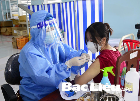 Học sinh Trường THPT Bạc Liêu tiêm vắc-xin ngừa COVID-19 tại Bệnh viện Đa khoa Thanh Vũ Medic. Ảnh: T.Q