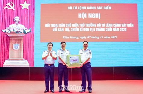 | Tại Hội nghị tổng kết công tác cảnh sát biển năm 2022 được Đảng ủy - Bộ Tư lệnh Vùng Cảnh sát biển 4 tổ chức, ngày 7/12, Trung tướng Bùi Quốc Oai, Chính ủy Cảnh sát biển tặng quà tuyên dương cán bộ, chiến sĩ Bộ Tư lệnh Cảnh sát biển 4 hoàn thành tốt nhiệm vụ năm 2022. |