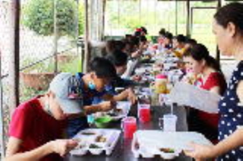 | Bữa ăn giữa ca của công nhân Công ty Cổ phần Xuất nhập khẩu Đại Dương Xanh Toàn Cầu. |