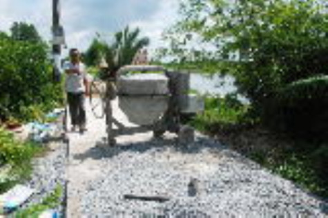 | Chỉ mới tiến hành đổ bê-tông mặt đường được một đoạn khoảng 200 m thì công trình cho ngừng thi công. |
