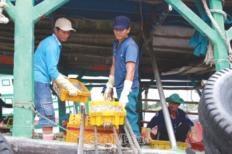 | Cá cơm sau khi khai thác được các tàu thu mua vận chuyển vào đất liền để cung cấp cho các cơ sở chế biến. |