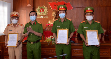 (CMO) Ngày 13/5, thừa uỷ quyền của lãnh đạo Bộ Công an, Đại tá Phạm Minh Luỹ, Phó giám đốc Công an tỉnh Cà Mau, đã trao thưởng cho các đơn vị thuộc Công an tỉnh Cà Mau vì đã lập chiến công đấu tranh, bắt giữ đối tượng vận chuyển trái phép chất ma tuý, thu giữ 1 kg ma tuý đá vào ngày 1/5.