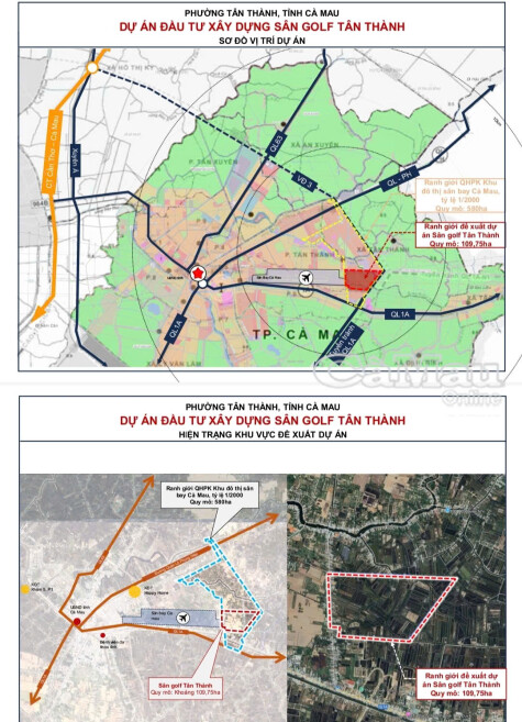 Theo đó, dự án được xây dựng trên phần diện tích 109,75 ha tại phường Tân Thành (cạnh Khu đô thị Sân bay Cà Mau)