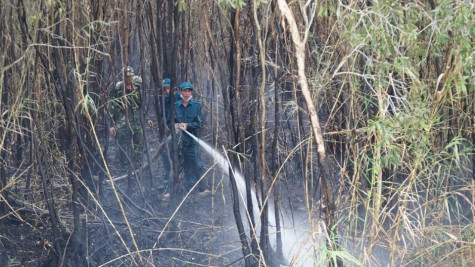 Đến 15 giờ 30 phút, người dân, dân quân tự vệ cùng với lực lượng Nông trường 402 vẫn đang tích cực chữa cháy, kiểm soát các đám ngún./.