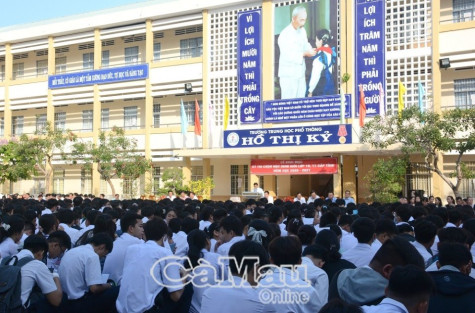 Các thí sinh tham gia khai mạc Kỳ thi chọn học sinh giỏi lớp 10, 11 cấp tỉnh năm học 2020-2021 tại trường THPT Hồ Thị Kỷ, Tp Cà Mau