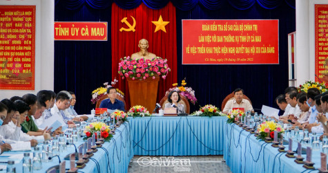 Đồng chí Trương Thị Mai, Uỷ viên Bộ Chính trị, Bí thư Trung ương Đảng, Trưởng ban Tổ chức Trung ương, Trưởng Đoàn kiểm tra, khẳng định: “Nghị quyết Đại hội XIII của Đảng có thắng lợi hay không, vấn đề mấu chốt là năng lực cụ thể hoá, hiện thực hoá Nghị quyết của địa phương, cơ quan, đơn vị. Cà Mau rất đáng khích lệ về tỷ lệ giải ngân vốn đầu tư công lên đến 70%, nhất là trong bối cảnh nhiều khó khăn trong thời gian qua vì dịch bệnh Covid-19. Công tác xây dựng, chỉnh đốn Đảng và hệ thống chính trị tại Cà Mau đạt nhiều kết quả quan trọng, đặc biệt là niềm tin của người dân vào Đảng, vào hệ thống chính trị, cán bộ, đảng viên là hết sức vững chắc”.