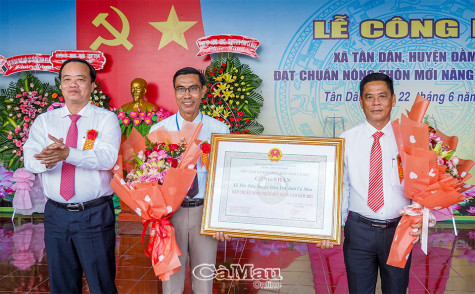 (CMO) Chiều 22/6, UBND huyện Đầm Dơi tổ chức lễ công bố quyết định của Chủ tịch UBND tỉnh công nhận xã Tân Dân đạt chuẩn nông thôn mới (NTM) nâng cao năm 2021. Đây là xã đầu tiên của tỉnh Cà Mau đạt chuẩn NTM nâng cao.