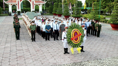 | Uỷ viên BCH Trung ương Đảng, Bí thư Tỉnh uỷ, Chủ tịch HĐND tỉnh Cà Mau Nguyễn Tiến Hải cùng các thành viên trong đoàn dâng hương từng ngôi mộ, tri ân các Anh hùng liệt sĩ tại Nghĩa trang Liệt sĩ tỉnh. |