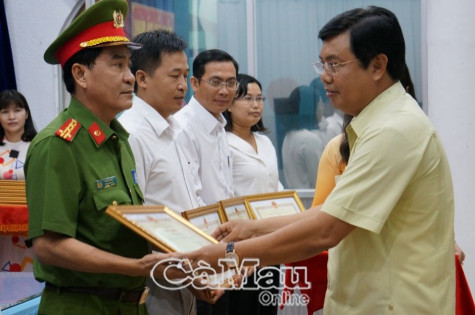 Chủ tịch UBND tỉnh Cà Mau Nguyễn Tiến Hải trao bằng khen cho các đơn vị hoàn thành tốt nhiệm vụ tại sự kiện