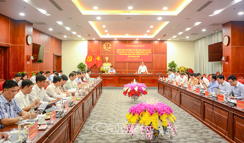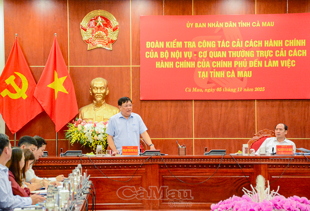 Báo Cà Mau Sáng 5/11, Đoàn kiểm tra công tác cải cách hành chính (CCHC) của Bộ Nội vụ - Cơ quan thường trực CCHC của Chính phủ do Thứ trưởng Nguyễn Văn Hồi làm Trưởng đoàn đã làm việc với lãnh đạo tỉnh Cà Mau.