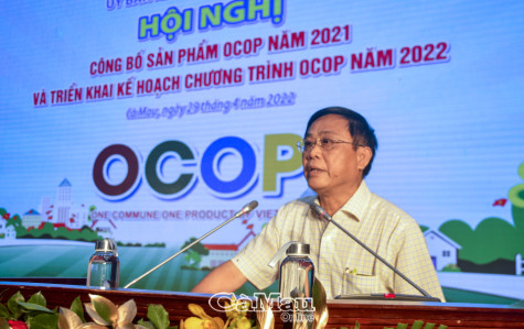Ông Nguyễn Văn Quân, Phó giám đốc Sở NN&PTNT tỉnh Cà Mau phát biểu tại Hội nghị công bố sản phẩm OCOP năm 2022.