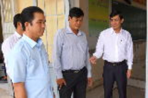 Ông Lê Hoàng Dự, Phó giám đốc Sở GD&ĐT Cà Mau (bìa phải), kiểm tra cơ sở vật chất tại trường THPT Phú Tân. |