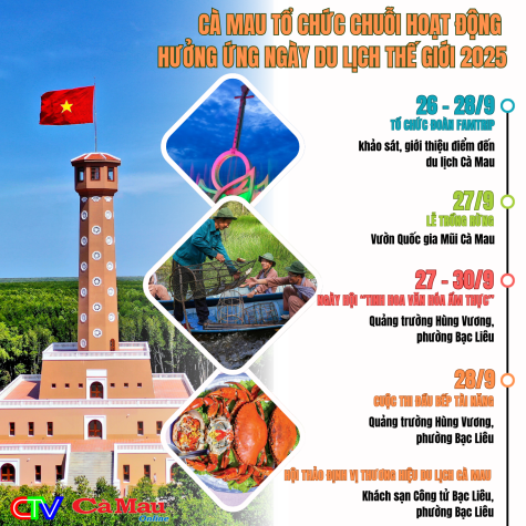 Tỉnh Cà Mau tham gia Ngày hội Du lịch Thành phố Hồ Chí Minh lần thứ 22 năm 2026, tổ chức gian hàng trưng bày với chủ đề “Cà Mau hội tụ bản sắc văn hoá phương Nam”.