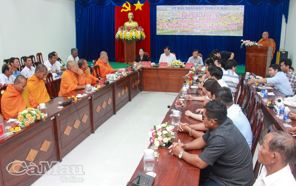 Chiều 14/11, tại Sở Dân tộc và Tôn giáo, UBND tỉnh Cà Mau tổ chức tổng kết hoạt động tham gia Lễ hội Ok Om Bok - Đua ghe Ngo năm 2025, được tổ chức tại phường Sóc Trăng, TP Cần Thơ. Phó Chủ tịch UBND tỉnh Ngô Vũ Thăng chủ trì buổi lễ.
