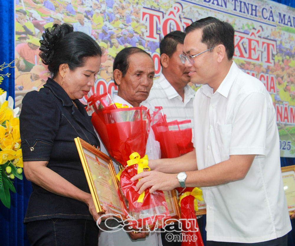 Phó Chủ tịch UBND tỉnh Ngô Vũ Thăng trao khen thưởng cho 7 tập thể có thành tích giữ gìn và phát huy bản sắc văn hoá truyền thống đồng bào Khmer Nam Bộ.
