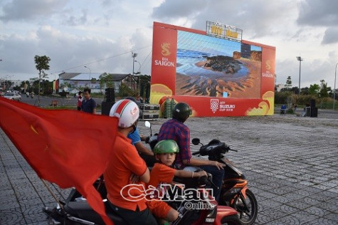 Khắp nơi trên các tuyến đường nội ô TP. Cà Mau, người dân đã treo cờ đỏ rực, cùng với băng rôn màu cờ sắc áo đội tuyển Việt Nam. Tại Quảng trường trung tâm, Phường 9, TP. Cà Mau đã trang bị một màn hình lớn để phục vụ khán giả.