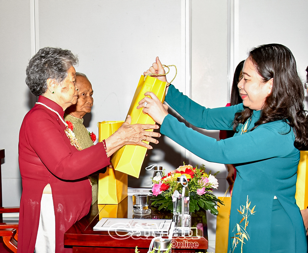 Phó Chủ tịch nước Võ Thị Ánh Xuân tặng quà tri ân Mẹ Việt Nam Anh hùng.