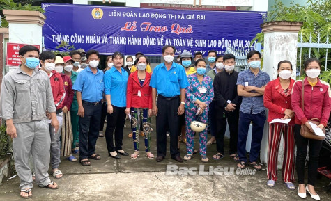 LĐLĐ TX. Giá Rai tặng quà cho đoàn viên, NLĐ khó khăn nhân Tháng Công nhân năm 2022. Ảnh: T.T