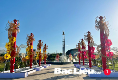 Trên địa bàn TP. Bạc Liêu, nhiều tuyến đường đã được trang trí cổng hoa, tiểu cảnh với những sắc màu tươi mới, rực rỡ, hứa hẹn tạo nên một bức tranh sinh động, lung linh khi Tết đến, Xuân về (ảnh 1).