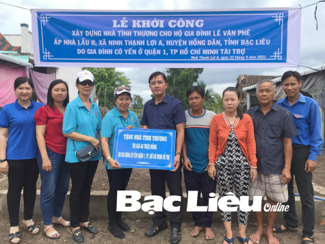 Thông qua vận động của Báo Bạc Liêu, Ban từ thiện Phật giáo TP. Bạc Liêu hỗ trợ kinh phí xây nhà tình thương cho hộ anh Lê Văn Phê (huyện Hồng Dân). Ảnh: T.Q