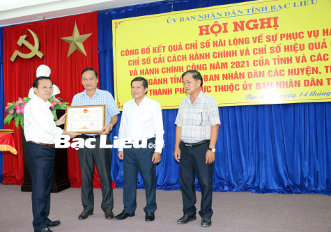UBND tỉnh tặng bằng khen cho các địa phương có thứ hạng cao trong cải cách hành chính cấp tỉnh. Ảnh: K.P
