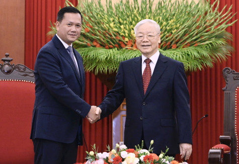 Tổng Bí thư Nguyễn Phú Trọng tiếp đón Thủ tướng Vương quốc Campuchia - Samdech Thipadei Hun Manet. Ảnh: Internet