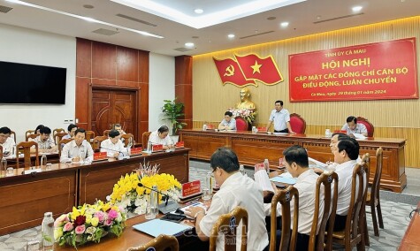 Chiều 29/1, để đánh giá lại công tác luân chuyển, điều động cán bộ, Tỉnh uỷ Cà Mau tổ chức Hội nghị gặp mặt các đồng chí cán bộ điều động, luân chuyển.