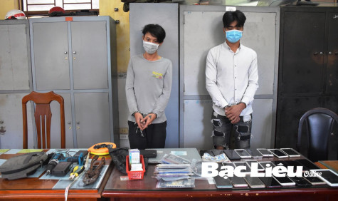 Trước đó, khoảng 3 giờ sáng 3/8, trong lúc tuần tra, kiểm soát an ninh trật tự trên đường Trần Huỳnh (thuộc địa bàn Phường 1), Tổ công tác 238 Công an TP. Bạc Liêu phát hiện 2 thanh niên đi trên mô tô biển kiểm soát 94K1-104.32 do Nguyễn Thanh Hùng (SN 1996) điều khiển chở Lê Hoàng Phúc (SN 1993), mang theo một túi nylon to màu đen. Lực lượng yêu cầu dừng xe để kiểm tra thì phát hiện bên trong túi có một máy tính xách tay, một máy tính bảng, 35 chiếc điện thoại di động các loại (tất cả đã qua sử dụng); 3 thẻ cào (chưa cào mã số) và 130 sim điện thoại nhiều mạng khác nhau (chưa qua sử dụng). Qua khai thác, 2 đối tượng thừa nhận số tài sản trên được lấy trộm tại một cửa hàng điện thoại di động ở ấp Biển Đông B (xã Vĩnh Trạch Đông, TP. Bạc Liêu). Công an đang tiến hành lấy lời khai, củng cố hồ sơ để xử lý theo quy định pháp luật.