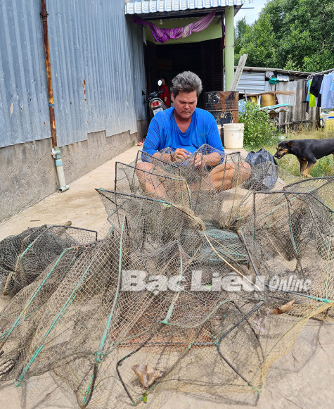 Anh Lý Giàu vá lú đặt tôm. Ảnh: T.Q