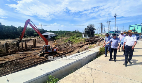 Phó Chủ tịch Thường trực UBND tỉnh - Lê Tấn Cận kiểm tra một số công trình cầu trên tuyến đê biển Đông thi công chậm.